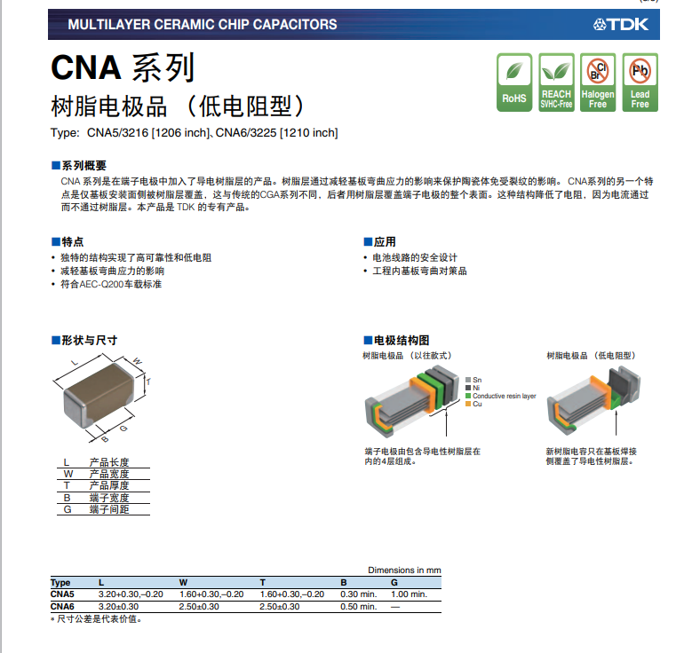 CNA6P1X7R1H106K250AE 1210 106K 50V 10UF X7R 車規(guī)級 低電阻 軟端頭