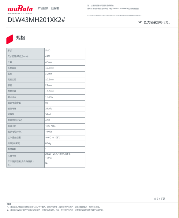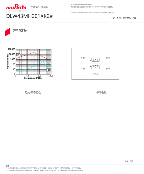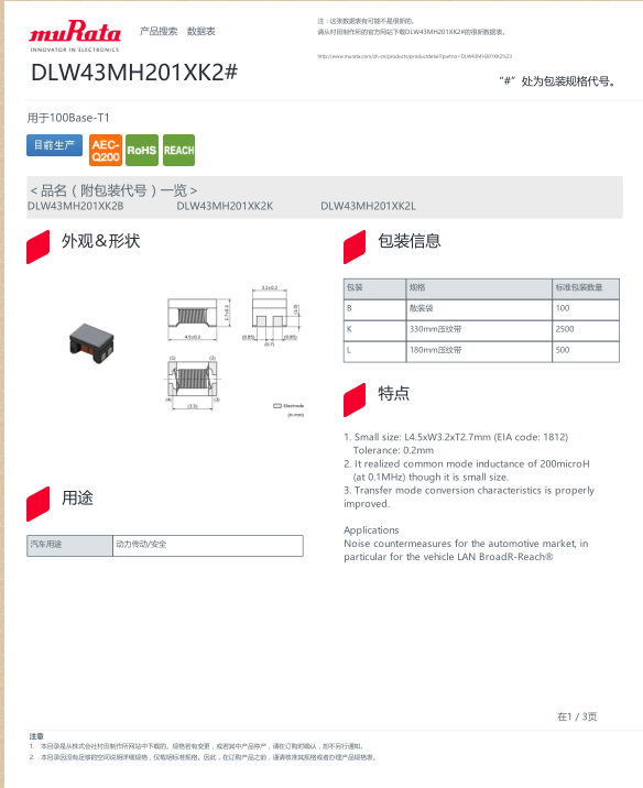村田Murata共模扼流圈/共模靜噪濾波器 系列型號齊全