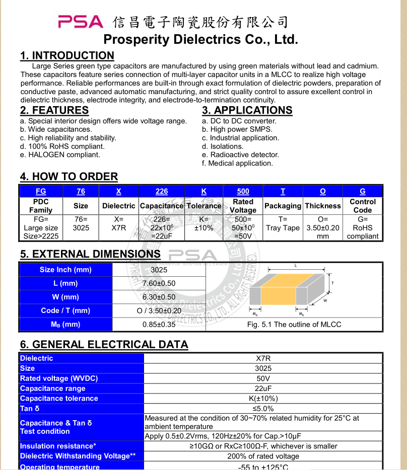 信昌PSA大尺寸 高電壓 大容量貼片電容器