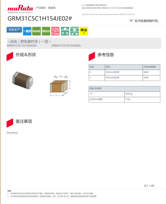村田Murata貼片高頻電容,C0G/NP0白電容
