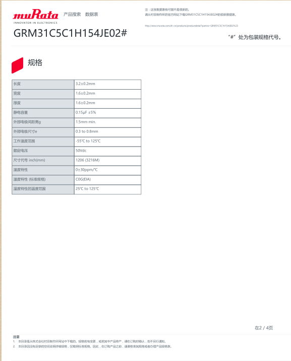 GRM31C5C1H154JE02L 1206 C0G 50V 150NF 5%