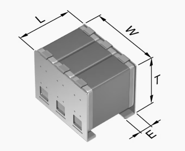 金屬支架電容是通過(guò)在外部電極上接合金屬端子來(lái)解決大型MLCC貼裝的設(shè)計(jì),