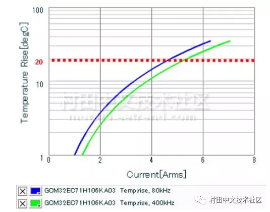 關于電容器的自生熱,請參考技術數據表中的正弦波紋波電流作為參考數據。還請使用設計輔助工具 (村田片狀電容器特性數據庫) 來獲得仿真設計電路的參考數值。